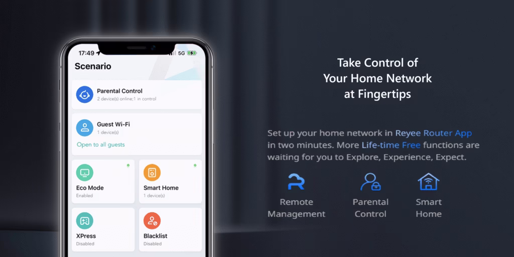 - Exclusive Reyee mesh providing full-space-coverage Wi-Fi solution